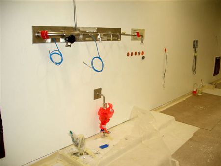 Bild 12: Installationswand mit Reinstdampf, WPU Rohrleitungen